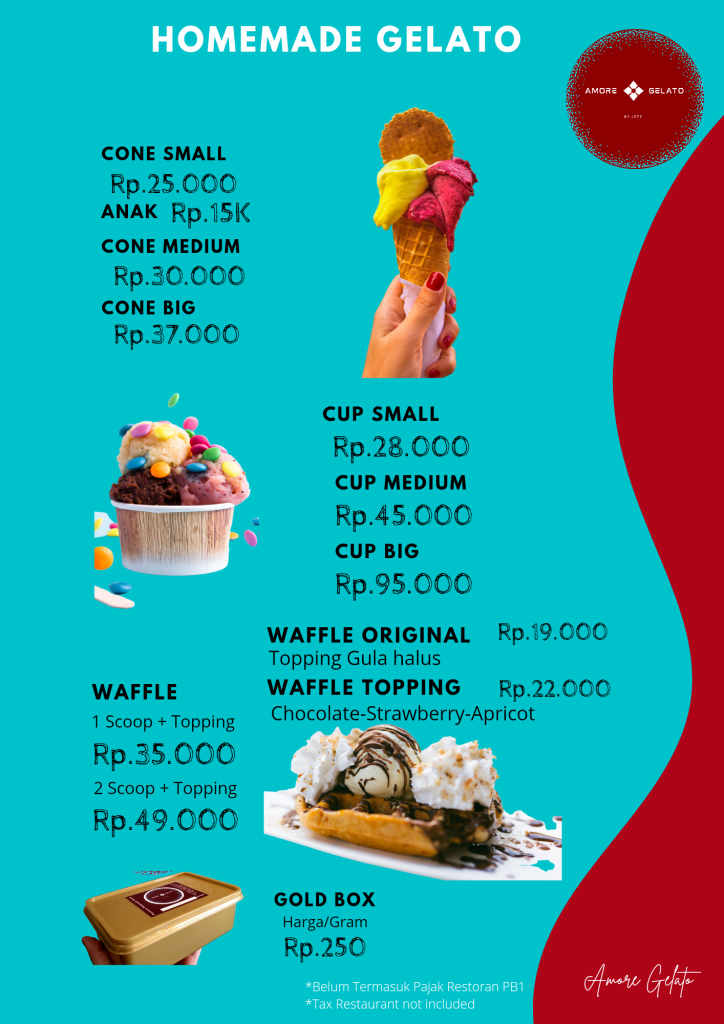 A big space to eat 36 Rasa of delicious Gelato Premium Quality, Bakery, cakes, Pizza with Fresh saus tomat!